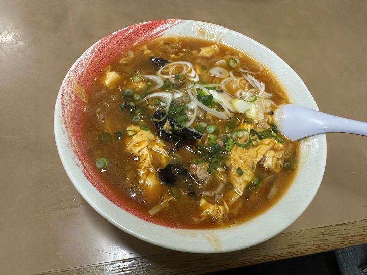 名前の通り酸っぱ辛い麺だが、実は出汁の旨味がもっとも強い仕様であるため、(味の)間口は広い。
